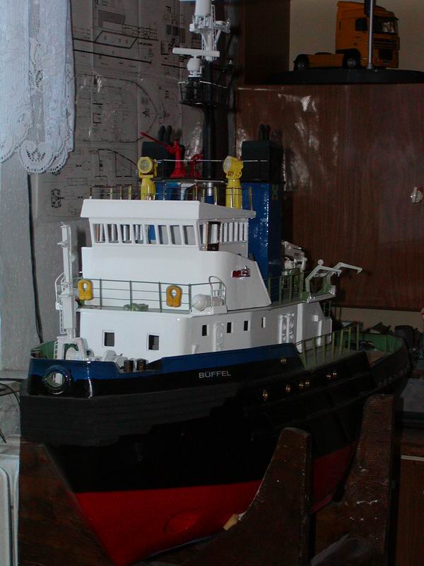 "BÜFFEL" Hochseebergungsschlepper "BÜFFEL" - Großmodell nach Werftplan Holzspantbauweise, GFK und ABS Aufbauten, Länge:1,25 m, Gewicht: 30 kg (noch in Bau)