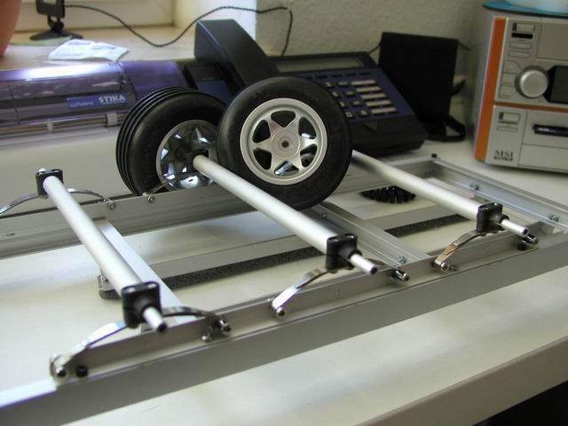 Die Achsen mit der Federung sind fertig - und es kommen andere Räder an den Trailer