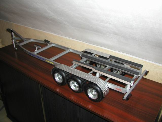 1. Trailer für B28 und HUMMER H2 Für die die B28 mit dem HUMMER H2 als Truck, muß noch ein Trailer gebaut werden. Let's beginning.... - Rahmen aus Alu-Profilteilen - Radaufhängungen mit Federung - Bereifung - Auflagen für das Boat - Kupplung - Beleuchtung - Design